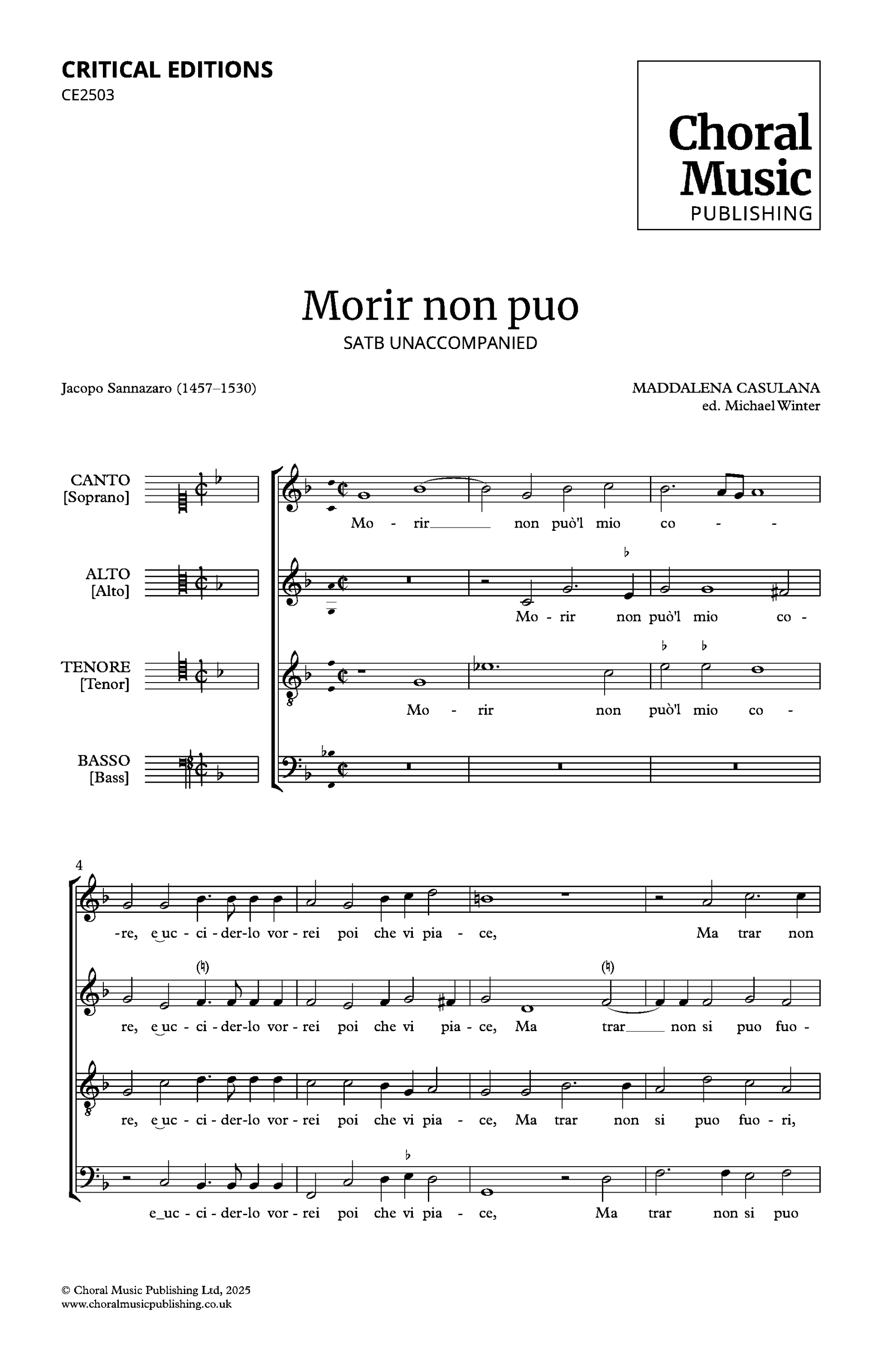 CE2403 Morir non può 'l mio core (Maddalena Casulana, ed. Winter) SATB